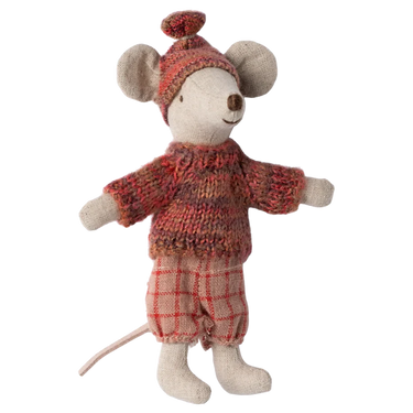 Diese Maileg Maus ist bereit für stundenlangen Spaß auf der Piste während der kalten Winterzeit. Die Maus trägt einen Strickpullover und eine Strickmütze. Außerdem ist sie mit einem Paar Ski und Stöcken ausgestattet. Schaue dir die winzige Strickmütze an, die die Ohren warm hält.