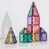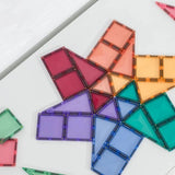 32-TEILIGES SET - Enthält 16 kleine Quadrate, 8 gleichseitige Dreiecke und 8 gleichschenklige Dreiecke in Pastellfarben. Alle Teile verfügen über das einzigartige, abgeschrägte Connetix-Design, das ihnen Stärke verleiht und gleichzeitig schöne klare Lichtbrechungen bietet.