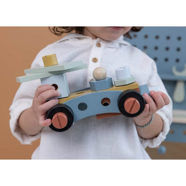 Legen wir los! Egal, was du vorhast - mit dieser Werkbank kannst du alles bauen. Schnapp dir dein Werkzeug und mach dich an die Arbeit. Bau dir ein Auto oder eine eigene Kreation, indem du die einzelnen Teile miteinander verbindest. Kleinkinder kopieren ihre Eltern nur zu gern. Mit dieser Werkbank können sie wunderbar zimmern, schrauben und reparieren - genau wie die Erwachsenen! Sie werden stundenlang an etwas schrauben, um es dann wieder zu zerlegen und neu zu beginnen. Die Werkbank fördert Rollenspiele, Kreativität, Motorik und Fantasie.