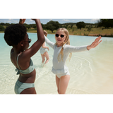 Die klassische, quadratische Ruben Sonnenbrille schützt Kinderaugen und ist gleichzeitig cool und bequem. Die Sonnenbrille ist aus haltbarem, recyceltem Polycarbonat gefertigt und hat Federscharniere, damit sie nicht so leicht bricht. Mit glänzenden Details wie einem silbernen Logo an der Seite und verschiedenen matten oder glänzenden Oberflächen zur Auswahl kann man damit ganz einfach einen individuellen Look betonen.