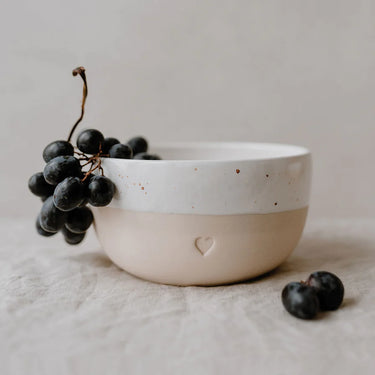 Die perfekte Schale zum Servieren von Salat, Obst oder wonach euer Herz auch schlägt. Eine kleine Töpferei aus Portugal produziert diese wundervolle Kollektion in liebevoller Handarbeit. Das minimalistische Design und die natürlichen Farbnuancen werden von der welligen Form abgerundet. Das Highlight der Schüssel ist die Blindprägung in Form eines Herzens.